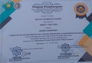 Selamat kepada Zulfa Fatimatuz Zahro @zulfa.fz_ , telah berhasil menjadi juara harapan 1 Kompetisi Online Matematika 2021 jenjang SMA/MA/SMK se karesidenan Bojonegoro. ...